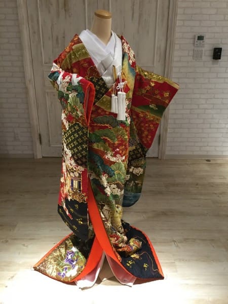 細やかな手刺繍をふんだんにほどこして、美麗な花嫁衣裳に仕上げました。
