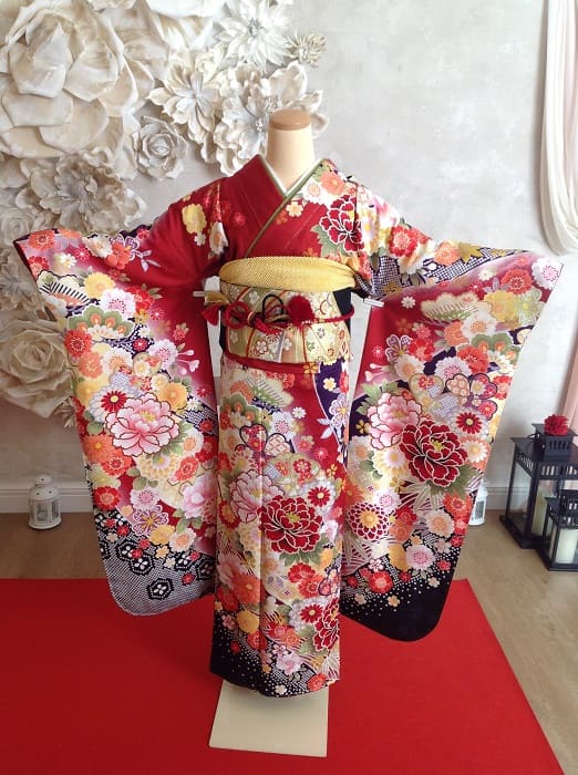 振袖 赤黒暈し ボタン