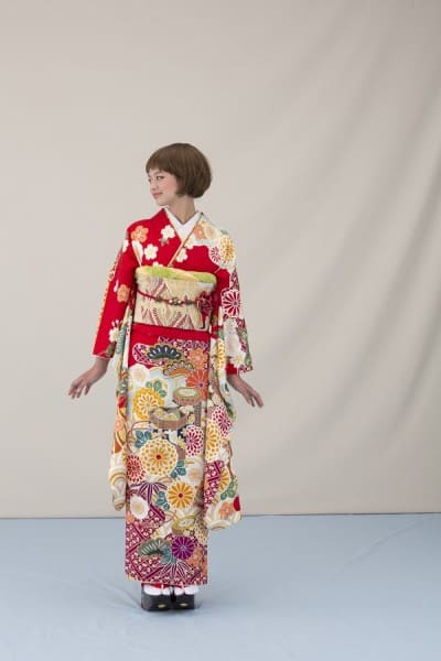 古典柄で色鮮やかな赤色の振袖で明るい印象になります。