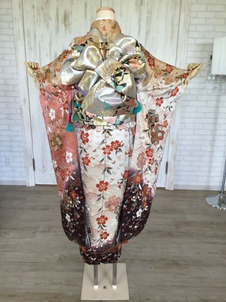 柄もたくさんの種類のおめでたいお花が描かれており、華やかで可愛らしい振袖になっております。