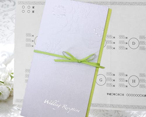 カバー、中紙、封筒、出欠ハガキ、シールが入ったお得な招待状セット。