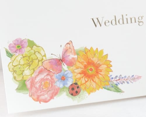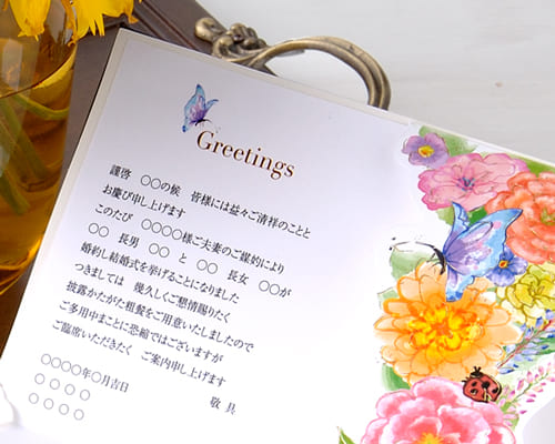 そよ風に揺れる花々を水彩タッチの鮮やかなカラーで彩っ招待状です。