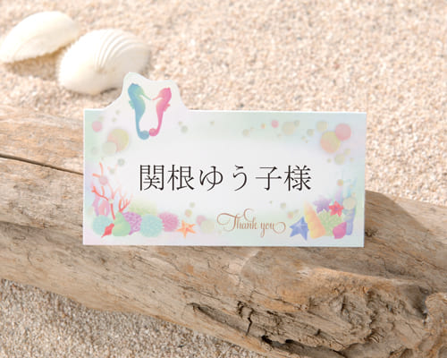 キラキラ輝く水泡がさわやかなウエディングを印象づけるお得な席札セット。