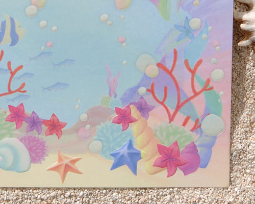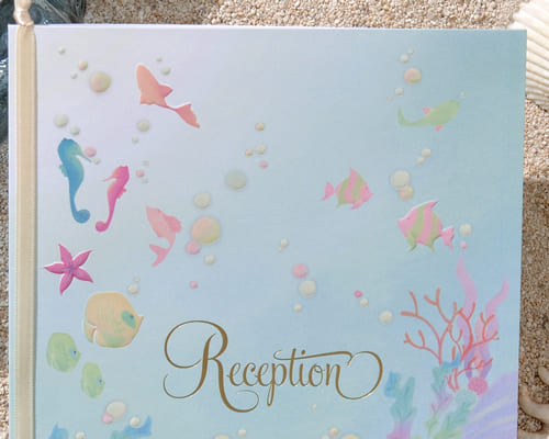 ほのかな陽の光が差込む七色の海でお魚たちがお二人のパーティーを祝福します