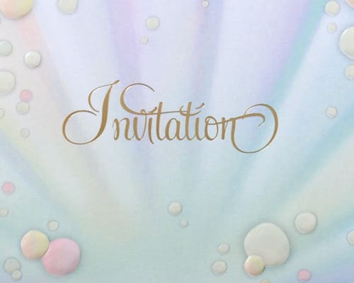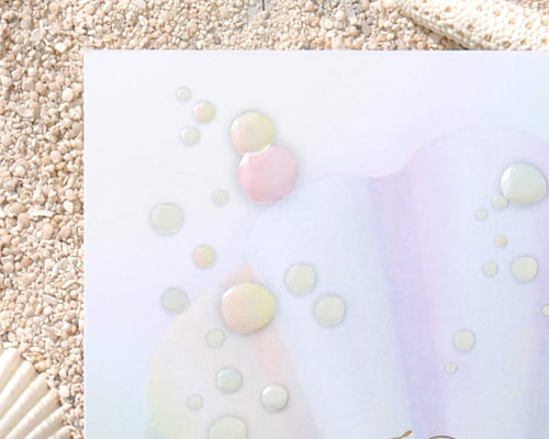 キラキラ輝く水泡がさわやかなウエディングを印象づけるお得な招待状セット。