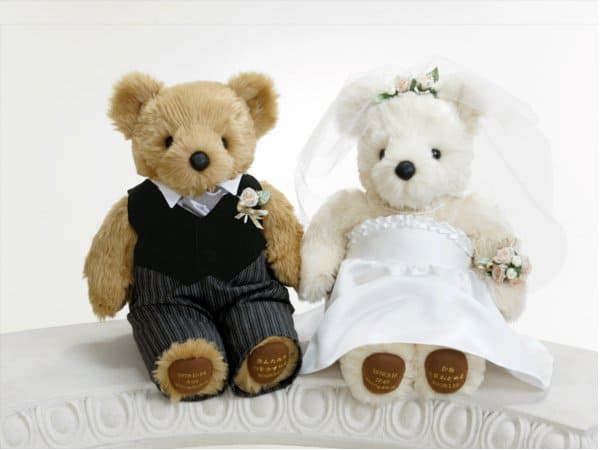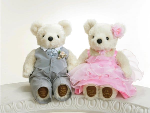 ウェイトドール ベア ウェディング1体(黒ベスト/白ドレス)