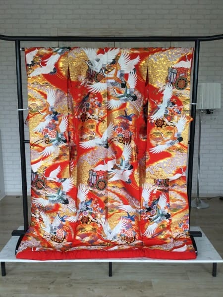 色打掛 赤 御所車に鶴 CU-2